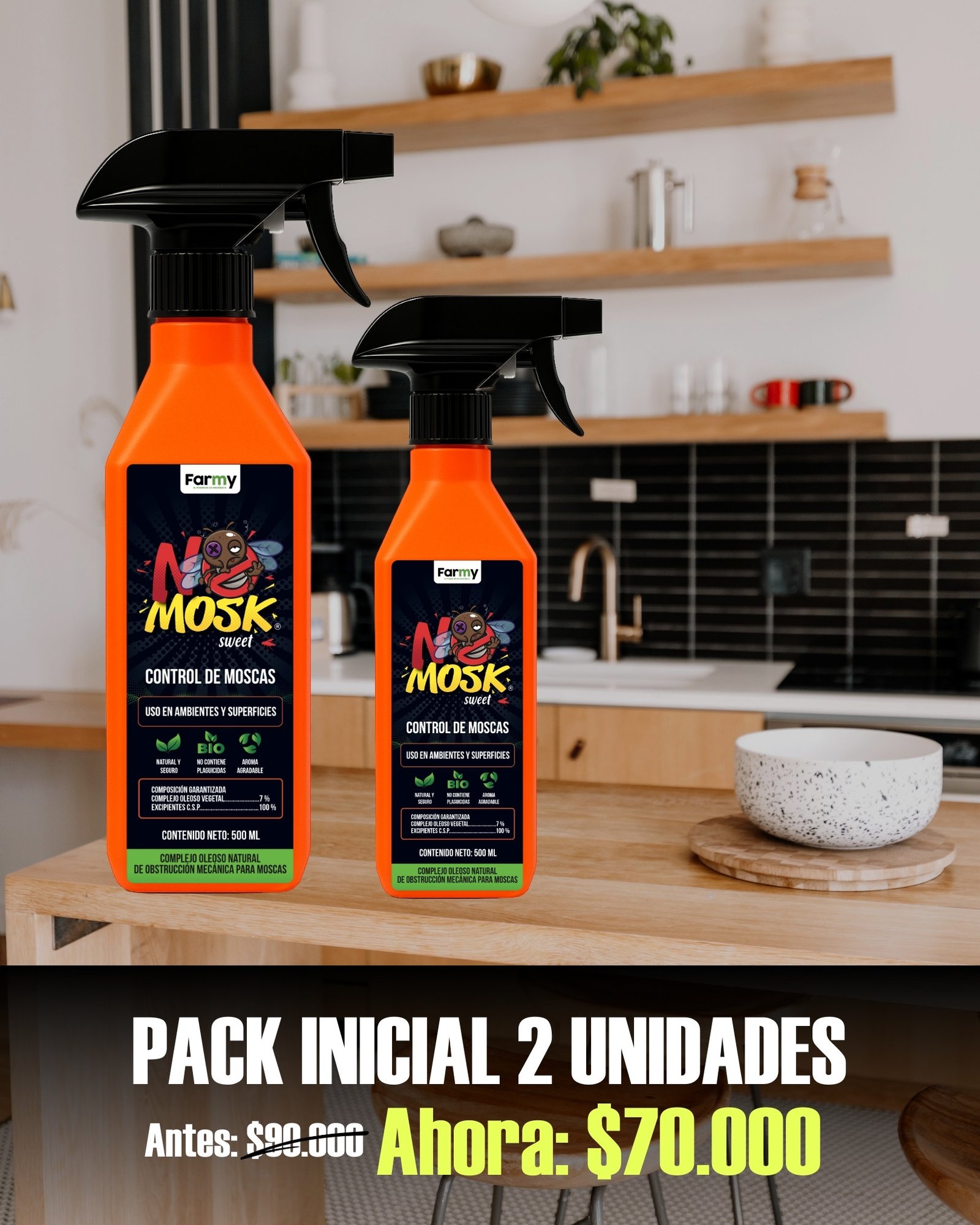 No se necesitan complicados procedimientos ni equipos especiales. Con NoMosk®, puedes decir adiós a las moscas de manera rápida y sencilla.